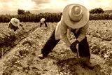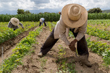 hispanic farmers manual amaranthus planting in a Mexico's farming field