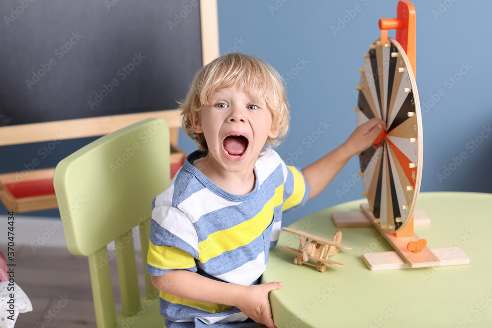 Cute little boy playing in kindergarten