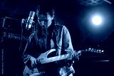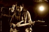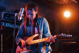 Young beautiful female performer with guitar singing and rehearsing in a recording studio