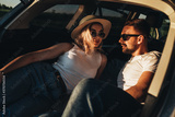 Man and Woman Relaxing Inside the Car Trunk Enjoying Weekend Road Trip, Travel and Adventure Concept