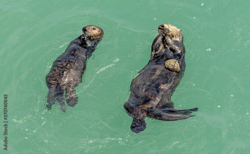 California on the way to Carmel, sea otters, mum with puppy who teaches how to break mussels