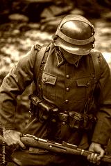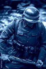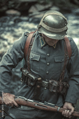 Finnish soldier of the second world war in an iron helmet with a rifle in his hands