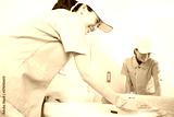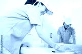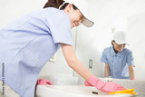 洗面台を拭く清掃員