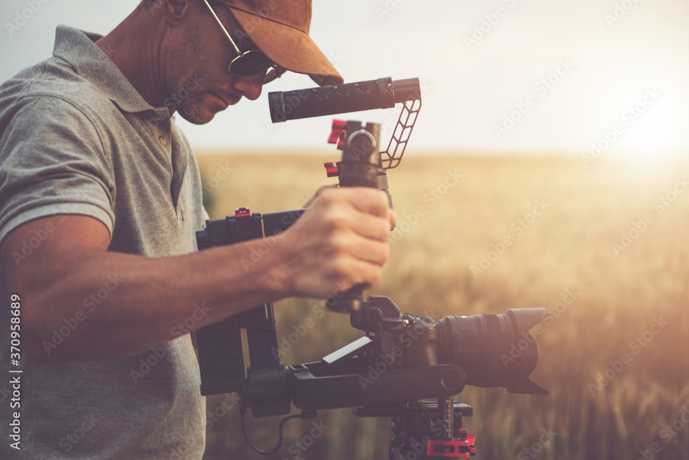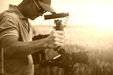 Men Taking Video Shot Using Digital Camera and Gimbal Stabilizator