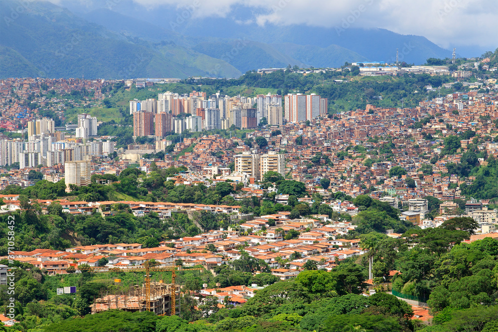 Panorama of Caracas city, capital city of Venezuela. Slums are seen on the hillside.
