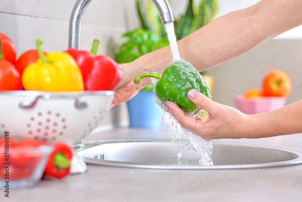Washing vegetables. A woman in the kitchen.