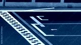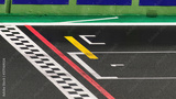The finish line of a racing track with the number one written on the asphalt , symbol of the goal to reach