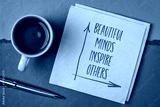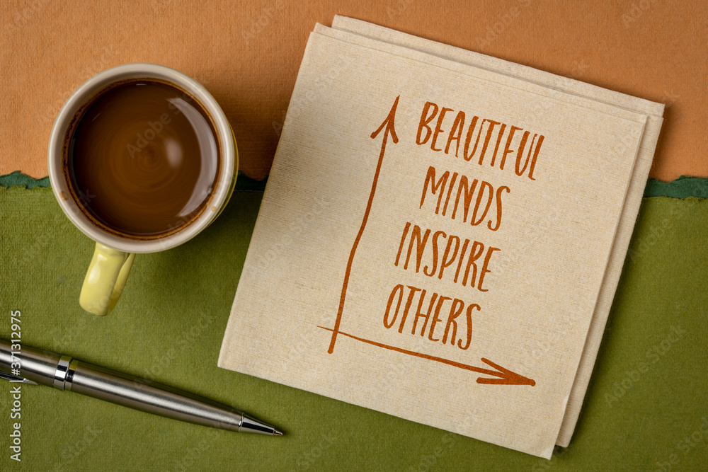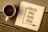 beautiful minds inspire others - inspirational handwriting on a napkin with a cup of coffee, education, teaching, coaching concept