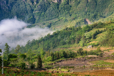 Rice field terraces. Mountain view in the clouds. Sapa, Lao Cai Province, north-west Vietnam