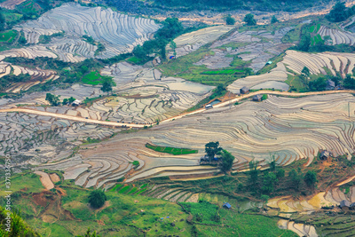 Beautiful terraced rice field in water pulling season in Y Ty, Bat Xat, Lao cai province in Vietnam