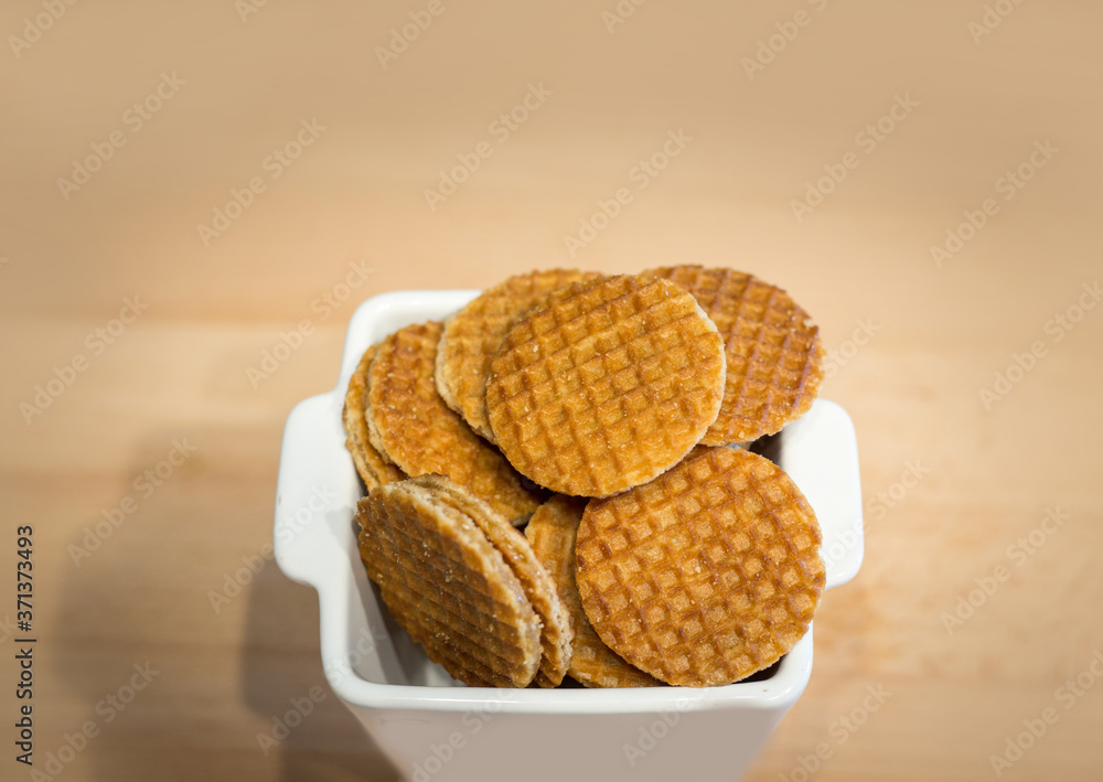 homemade Stroopwafel dessert and syrub serve on ceramic