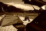Young Couple Enjoying Road Trip, Camping Outdoors by the River