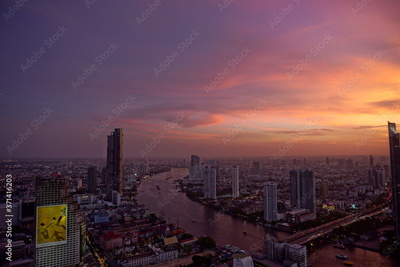Bangkok city (Thailand) with beautiful sky. Bangkok at sunset time.