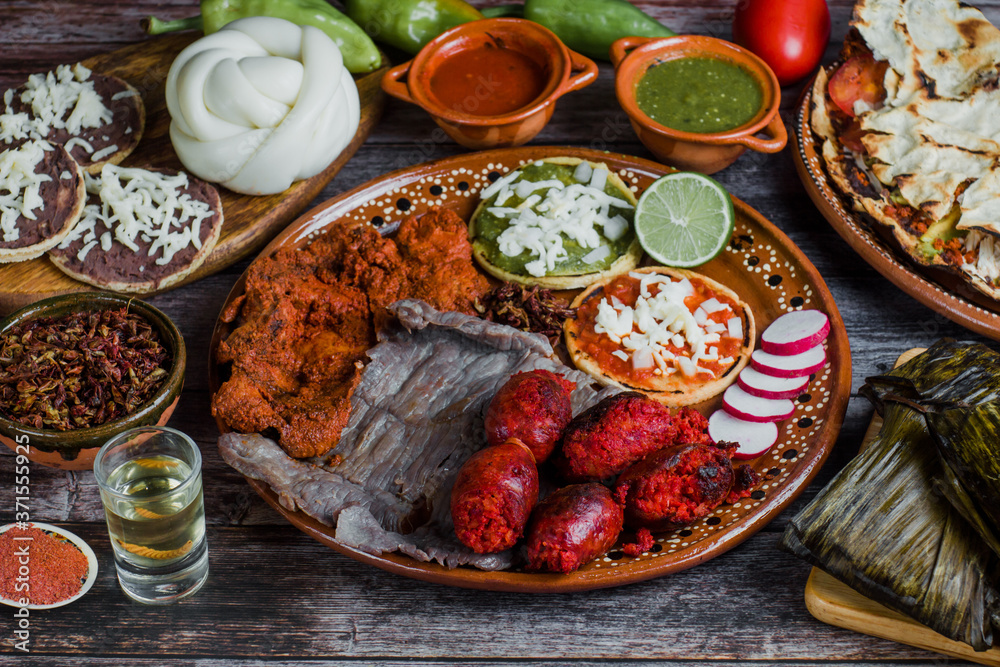 grilled mexican barbecue, Chorizo, Cecina and spicy meat from Oaxaca Mexico