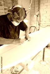 Surfboard Modeling Workshop - Man perfecting the modeling of a surfboard