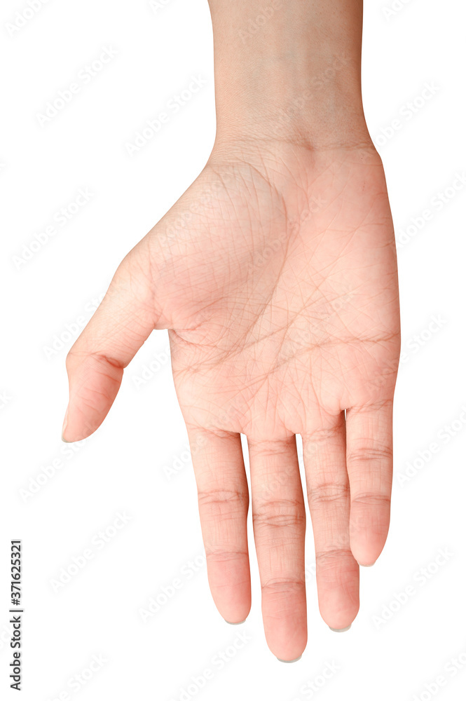 Hand open and ready to help or receive. Gesture isolated on white background with clipping path.