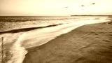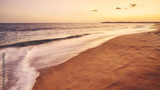 Sandy tropical beach at sunset, long exposure picture, summer vacations concept, color toning applied.