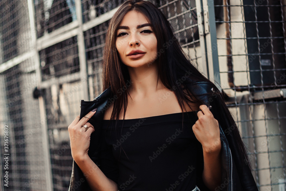 Pretty young sexy fashion woman posing on ventilators background.