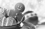 Gingerbread cookie men in a red cup