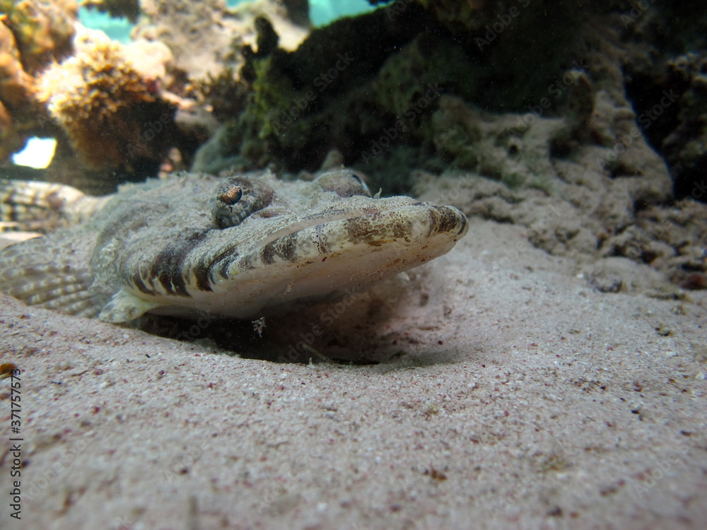 Crocodile fish, fish bone type fish Osteichthyes Flathead (Platycephalidae). Crocodile fish, tentacle flatheads.