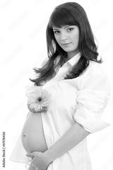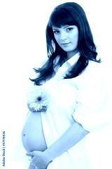 pregnant woman with pink daisy flower
