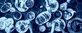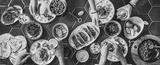 Family or friends home taco party. Flat-lay of Mexican traditional dishes Tacos with beef meat, corn tortillas , tomato salsa and peoples hands over green background, top view. Mexican cuisine concept