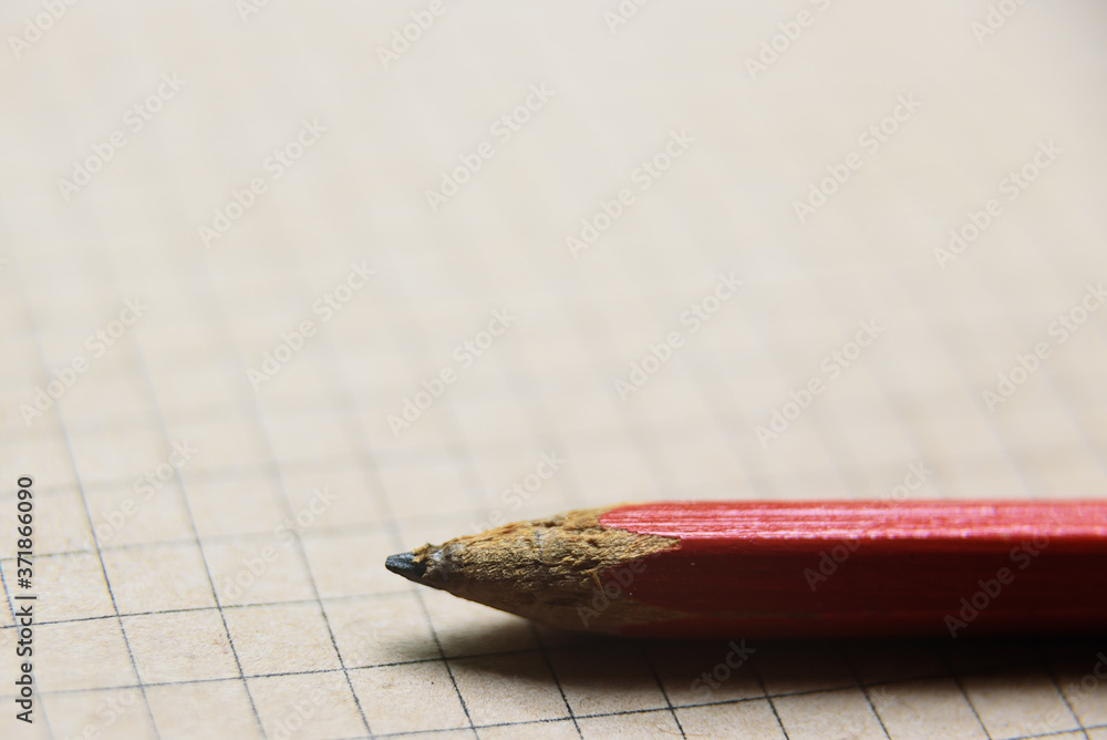 Graph paper of notebook background, blank page of retro sketchbook and old pencil.