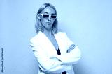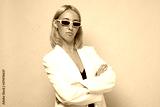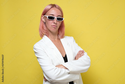 Fashion portrait of serious woman dressed as a secret agent or spy