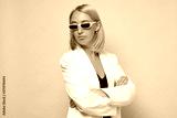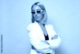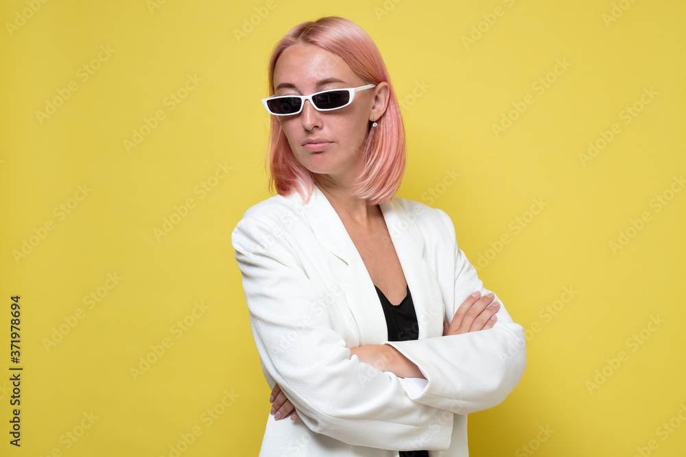 Fashion portrait of serious woman dressed as a secret agent or spy
