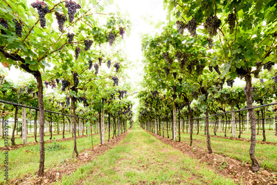 rows of grapes in vineyard in the classic Valpolicella, Verona, ready to be collected and turned into special wines like Recioto and Amarone