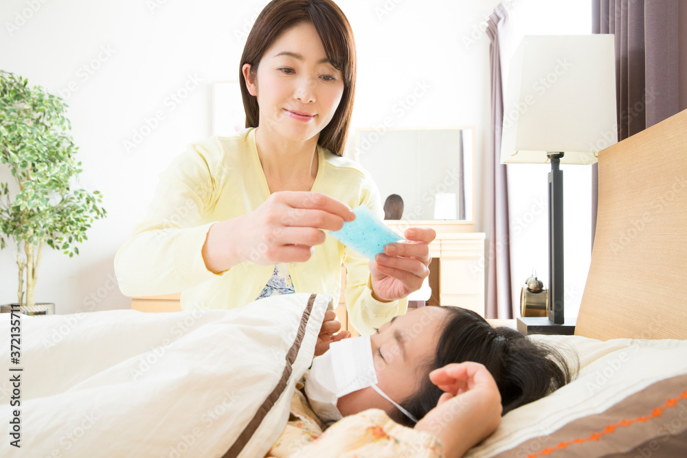 子供の看病をする母親