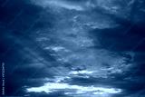Sunset in the clouds. Blue orange purple sunset background. A bright beautiful sunset on a dramatic sky. Cloudscape. Evening thunderstorm.
