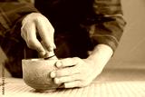 お茶をたてる男性の手元