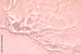 Closeup of pink transparent clear calm water surface texture with splashes and bubbles. Trendy abstract summer nature background. Coral colored waves in sunlight.