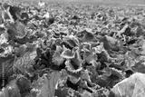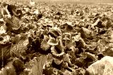 Ice and frost on canola leaves. Rapeseed field after harvest.