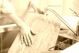 まな板を洗う女性
