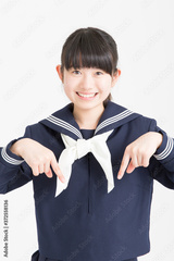 指差す女子中学生