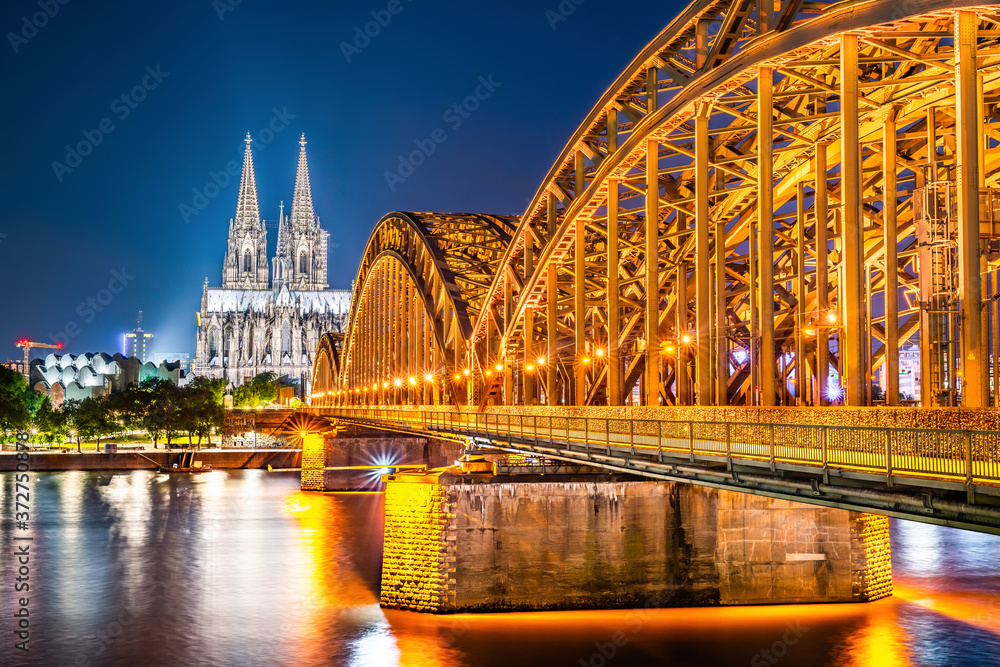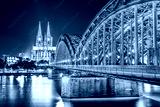 Cologne with the illuminated Cologne Cathedral, the Hohenzollern Bridge and the Rhine at night