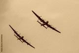 The last two remaining airworthy Avro Lancasters heavy bombers performing a duet in the skies