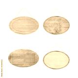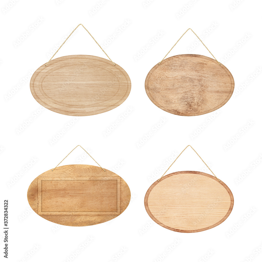 Set of empty Oval wooden sign with lope for hang on white background with clipping path