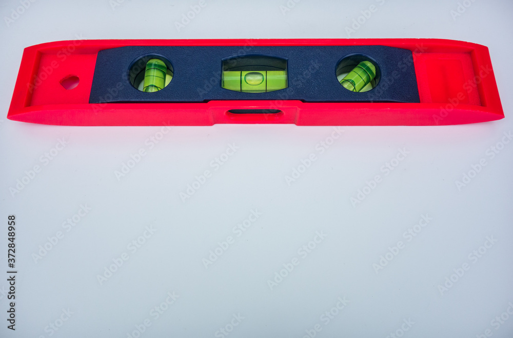 Red construction level, on white isolate, place for the inscription.