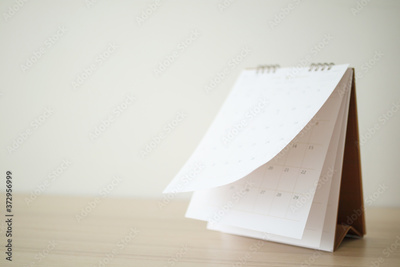 Blur Calendar page flipping sheet on wood table background business schedule planning appointment meeting concept