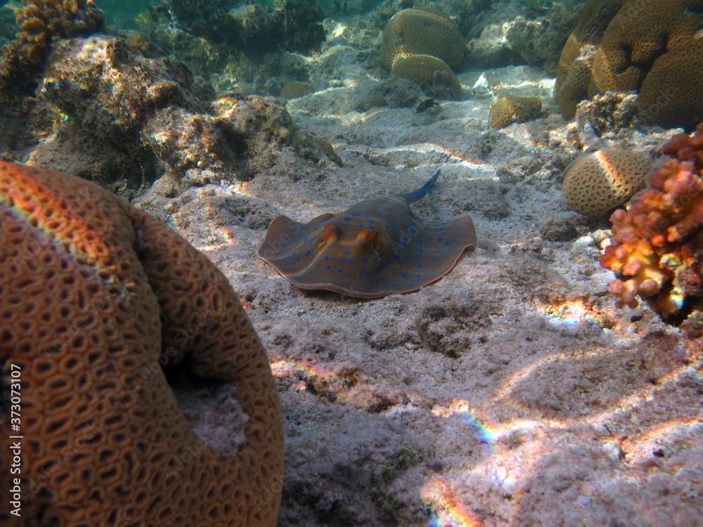 Taeniura lymma. Stingrays - Batoidea Stingray Family. Spotted Stingrays.