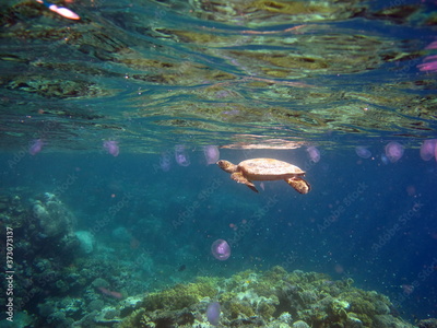 Sea turtles. Great Reef Turtle Bissa.