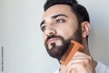 Bearded man comb his beard
