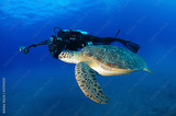 Underwater photographer taking photo