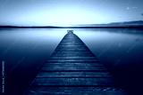 Old wooden pier at sunset. Long exposure, linear perspective