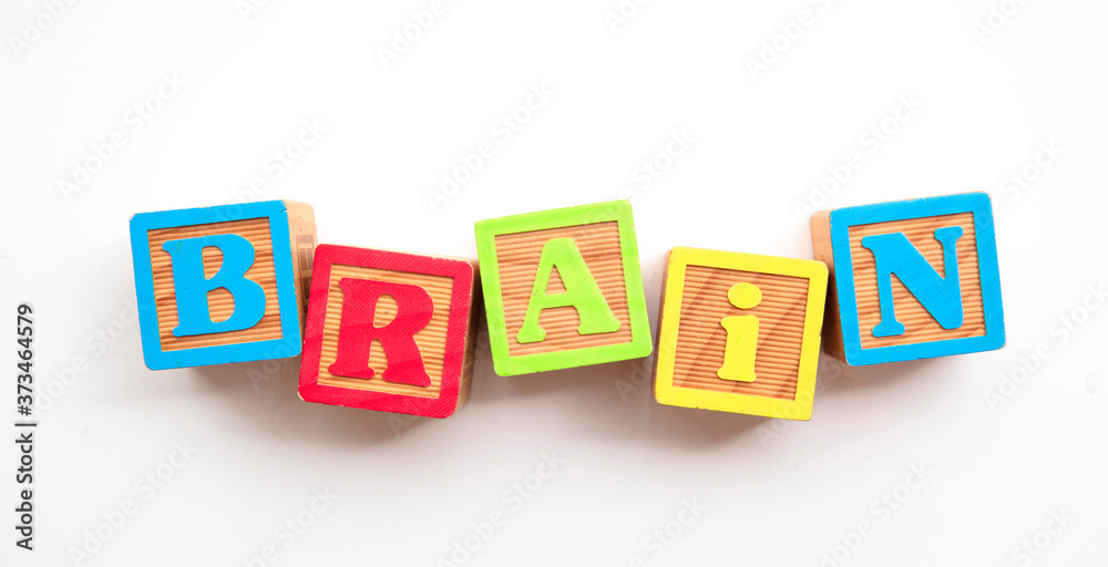 Brain word made from colourful wooden baby development blocks