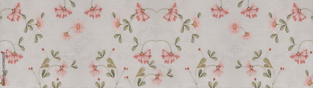 Gray grey concrete cement stone wallpaper texture background banner panorama, with pastel retro vintage pink rosé flower print
