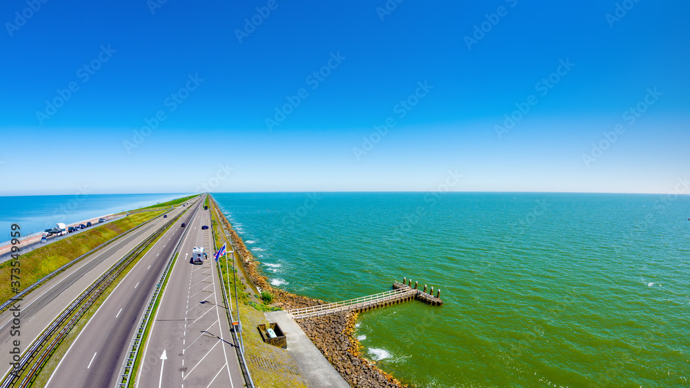 The Afsluitdijk between the North Sea and the IJsselmeer in the Netherlands